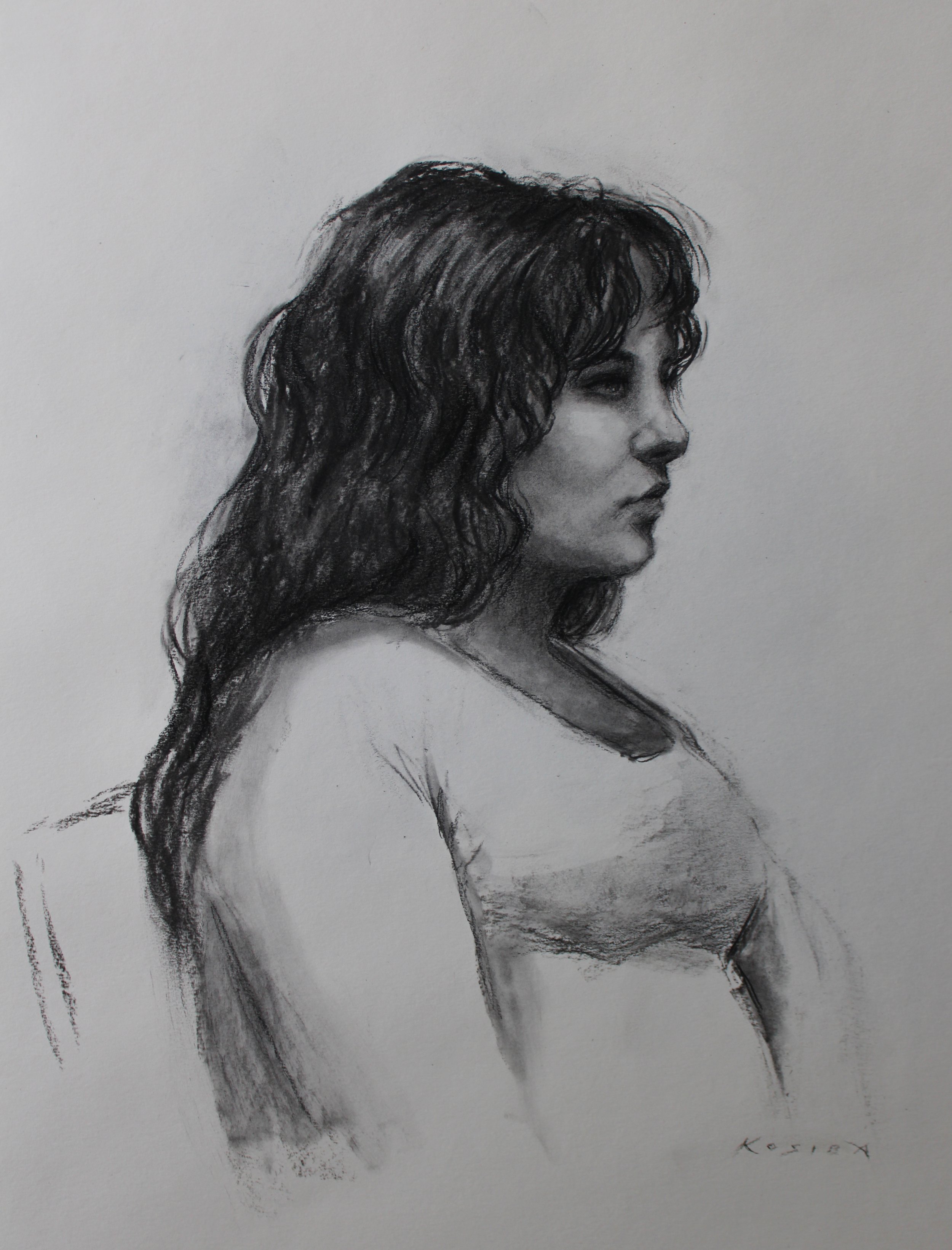 Working from life also made me notice the details that cameras typically over-sharpen or darken. There is a certain softness to the eyes and lips that is caused by movement. The edges on the nose, in contrast, are harder due to a lack of movement.